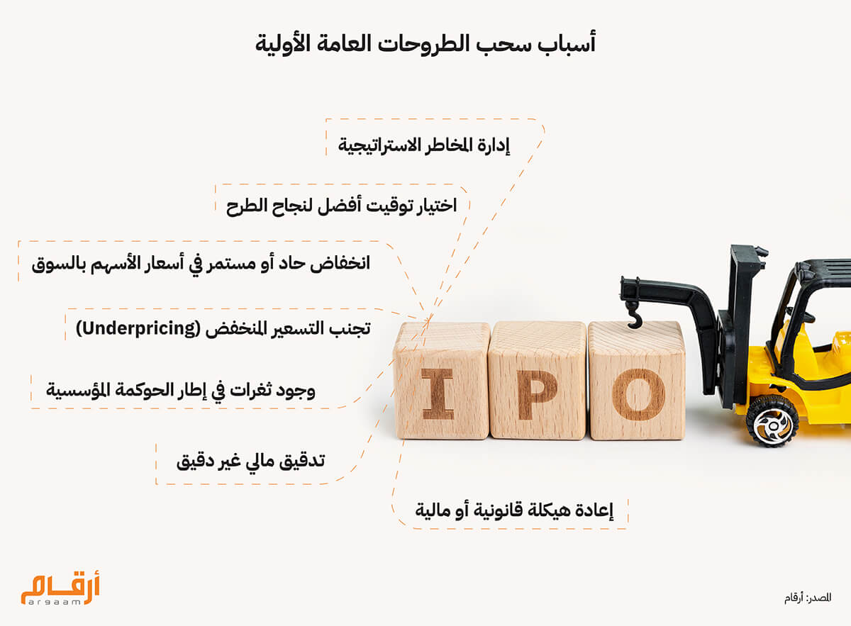 وعندما لا يمكن التوصل إلى توافق حول قيمة السهم، قد تختار الشركات سحب الطرح العام الأولي بدلاً من المخاطرة بالاكتتاب بسعر يرى فيه المؤسسون أو المساهمون الرئيسيون خسارة للقيمة أو تهديداً لسيطرتهم.