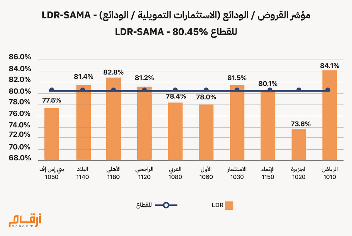 📊 مؤشر القروض / الودائع (الاستثمارات التمويلية / الودائع) - LDR- SAMA يمثل مؤشر القروض إلى الودائع (LDR – SAMA) أحد أهم المقاييس المستخدمة لقياس قدرة البنوك على تمويل محفظة القروض اعتمادًا على قاعدة الودائع، مع الأخذ في الاعتبار التعديلات الرقابية الخاصة بالبنك المركزي السعودي. ويعتمد هذا المؤشر على احتساب صافي الاستثمارات التمويلية (صافي القروض والسلف) مقابل ودائع العملاء بعد تطبيق الأوزان الزمنية للعقود التمويلية، وإضافة التمويلات طويلة الأجل، واستبعاد بعض البنود مثل المعاملات مع البنك المركزي. وقد بلغ متوسط القطاع السعودي بنهاية الربع الثالث 2025 مستوى 80.45%، وهو مستوى يُظهر توازنًا بين التوسع الائتماني والمحافظة على سيولة مريحة. وعند تحليل أداء البنوك، تظهر فروقات واضحة في مستويات تشغيل الودائع. إذ سجل بنك الرياض أعلى نسبة في القطاع عند 84.1%، مما يعكس نشاطًا ائتمانيًا مرتفعًا مقابل قاعدة الودائع المتاحة. تلاه البنك الأهلي السعودي بنسبة 82.8%، ثم بنك الاستثمار بنسبة 81.5%، وكلها أعلى من متوسط القطاع. كما حقق مصرف الراجحي نسبة 81.2%، مدعومًا بمحفظة تمويل كبيرة وطلب قوي على الائتمان، بينما جاءت مستويات بنك الإنماء والاستثمار والأول والعربي ضمن نطاق قريب من المتوسط، بنسب تراوحت بين 78.0% و80.1%، ما يعكس توازنًا نسبيًا في النمو الائتماني مقابل الودائع. في المقابل، سجلت البنوك ذات فائض السيولة الأكبر — مثل الجزيرة (73.6%) والبلاد (77.5%) — نسبًا أدنى من المتوسط، مما يعكس وفرة في الودائع مقارنة بوتيرة الإقراض، ويوفّر لها هوامش سيولة أعلى وقدرة أعلى على تلبية الطلب الائتماني دون ضغوط تمويلية. وتكشف هذه التباينات أن البنوك الكبرى تميل إلى تشغيل أعلى للودائع لدعم النمو الائتماني، بينما تحافظ البنوك الأصغر على مستويات أكثر تحفظًا من السيولة. وبشكل عام، يؤكد استقرار متوسط القطاع عند 80.45% قدرة البنوك السعودية على الموازنة بين التوسع الائتماني والاحتفاظ بمستويات سيولة مريحة متوافقة مع متطلبات البنك المركزي السعودي. ![]() 🔎 أثر سياسة التوزيع على CET1 حيث أن كل ريال يخرج كتوزيع أرباح يقلل من رأس المال الأساسي CET1 بنفس المقدار، وبالتالي يقلل النسبة (CET1/RWA). تمثل سياسة التوزيعات النقدية أحد أهم العوامل المؤثرة في قوة رأس المال الأساسي (CET1) لدى البنوك السعودية، إذ يؤدي الاحتفاظ بجزء أكبر من الأرباح إلى رفع القاعدة الرأسمالية ودعم كفاية رأس المال دون الحاجة لإصدارات رأسمالية جديدة. وقد أظهرت بيانات القطاع بنهاية الربع الثالث 2025 أن البنوك ذات سياسات التوزيع المعتدلة سجّلت نموًا أعلى في الأرباح المبقاة، ما انعكس إيجابًا على مستويات CET1، في حين شهدت البنوك ذات التوزيعات المرتفعة تباطؤًا نسبيًا في نمو رأس المال الأساسي. وارتفعت الأرباح المبقاة المجمعة للقطاع إلى 109.09 مليار ريال (+20%)، مما عزز رأس المال الأساسي خصوصًا لدى البنوك الكبرى التي تستحوذ على النصيب الأكبر من هذه الأرباح. ويؤكد ذلك أن التوازن بين العائد للمساهمين وتعزيز الاستدامة الرأسمالية يشكل عنصرًا مهمًا في قدرة البنوك على مواجهة نمو الأصول المرجّحة بالمخاطر ودعم التوسع الائتماني.