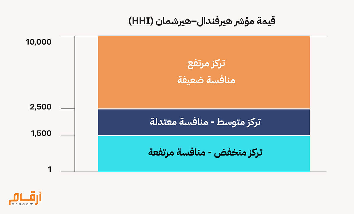 ⚖️ ثانياً: منافسة معتدلة، HHI متوسط