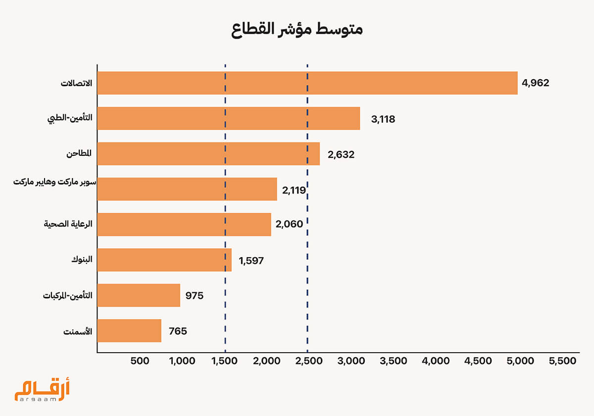يتنافس في قطاع التأمين الطبي 20 شركة مدرجة في السوق المالية، وتأتي شركة بوبا العربية في المقدمة بحصة سوقية 44% من إجمالي أقسط التأمين المكتتبة خلال عام 2024، يليها شركة التعاونية بحصة سوقية 33% ثم شركة ميدغلف للتأمين بـ 7%، ثم باقي الشركات بحصص لا تتخطى الـ 5% لكل شركة على حده. مؤشر HHI للقطاع بلغ 3118 نقطة خلال عام 2024 و هو نفسه متوسط فترة الدراسة، مما يعني أن تركز القطاع مرتفع ما يعكس منافسة ضعيفة. ![]() قطاع الاتصالات "الجوال في السعودية" تركز مرتفع – منافسة ضعيفة