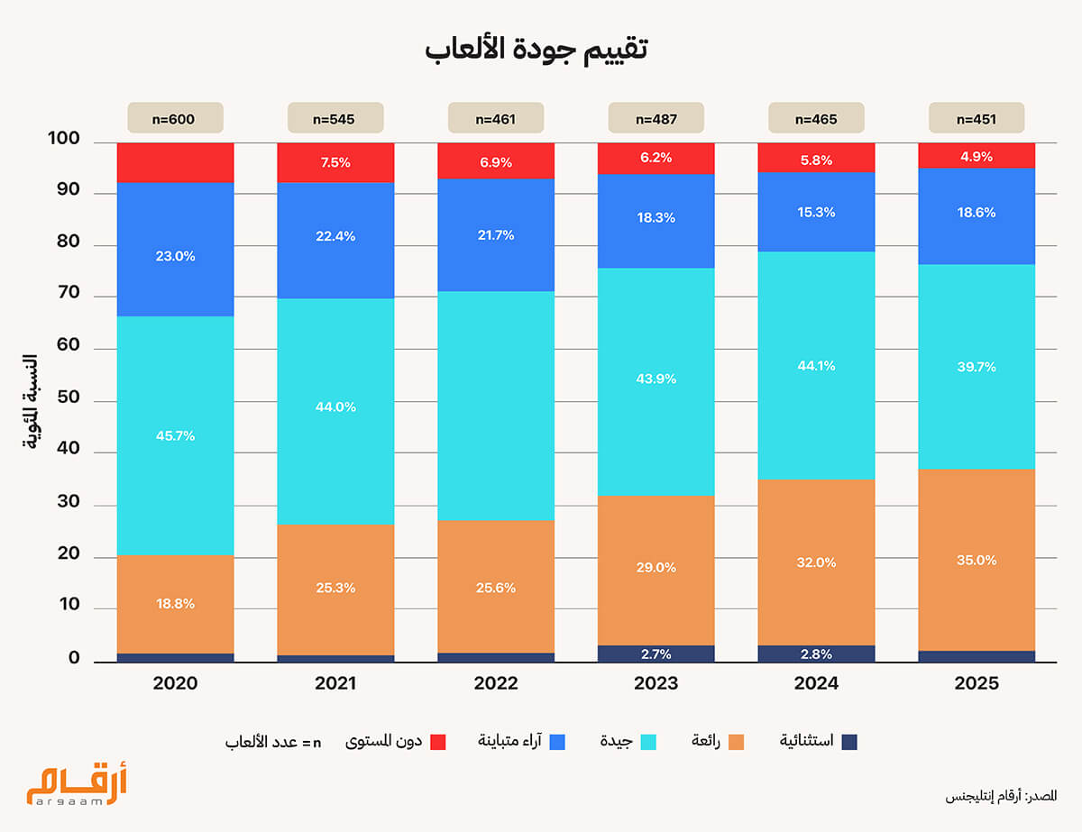 🔦 تضخم الجودة وأثرها الهيكلي في سوق 2025 شهد عام 2025 ظاهرة استثنائية يمكن وصفها بـ تضخم الجودة، حيث نجحت 166 لعبة في تخطي عتبة 80 درجة من أصل 100 وفقا لموقع ميتاكريتيك (Metacritic)، المتخصص في تصنيف وتقييم الألعاب الإلكترونية، أي ما يعادل 36.8% من إجمالي 451 لعبة خضعت للتقييم، مسجلةً بذلك ذروة تاريخية لإجمالي الإصدارات التي تحظى بإجماع نقدي إيجابي. هذا الوضع أفرز مفارقة تجارية بالغة التعقيد، إذ لم يعد تحقيق تقييم (+80) شرطاً كافياً لضمان الجدوى الاقتصادية أو الاستدامة المالية. وتكشف القراءة المتأنية لبيانات موثوقة ومعلنة عن القطاع عن انقسام حاد داخل هذه الشريحة ذاتها. فقد بلغت فئة الألعاب المصنّفة رائعة بتقييم يتراوح بين 80 و89 مستوى التشبّع، مع تسجيل 158 لعبة (تمثل %35 من إجمالي الإصدارات) زيادة تقارب 40% مقارنة بعام 2020. في المقابل، اقتصرت فئة الألعاب المصنفة استثنائية بتقييمات بلغت 90 من أصل 100 على ثمانية ألعاب فقط (تمثل 1.8% من إجمالي الإصدارات) مقارنة بنحو 13 لعبة في كل من عامي 2023 و2024. ![]() ![]() ⁉️ فخ الوسط المزدحم أسفرت ظاهرة تضخم الجودة عن تركز القيمة السوقية بشدة في الوسط المزدحم من الألعاب الاستثنائية، وهي منطقة سوقية تتكدس فيها الإصدارات ذات الجودة العالية (فئة 80-89 درجة) لكنها تفتقر إلى العناصر الفارقة التي تضمن لها حصة سوقية مهيمنة، بينما تكافح الأعمال المتميزة للنجاة وسط سوق مشبعة لا يعني التفوق التقني فيها بالضرورة تفوقاً مالياً. وتتجلى خطورة هذا الوسط المزدحم في كونه يمثل فخاً استثمارياً. فبينما تواصل التكاليف الإنتاجية لهذه الألعاب الارتفاع لمواكبة معايير الجودة والتطوير، تظل عوائدها محدودة بسبب كثرة البدائل المتاحة في ذات الفئة. وفي المقابل، تزداد الفجوة اتساعاً مع فئة الألعاب الاستثنائية (+90)، التي استطاعت رغم انكماش عددها أن تحافظ على جاذبية احتكارية، مما يؤكد أن القيمة السوقية في 2025 باتت تتركز في الأطراف، بينما يغرق الوسط في دوامة التنافسية المفرطة. تُقدم الأزمة المالية التي واجهتها شركة يوبي سوفت (Ubisoft) الفرنسية نموذجاً مثالياً على هذه المعضلة، فبالرغم من إنتاجها لألعاب من فئة (AAA) بميزانيات تطوير ضخمة، إلا أن الأداء التشغيلي للشركة في العام المالي 2024-2025 اقترب من نقطة التعادل المالي. وقد استقر صافي المبيعات، بعد احتساب المرتجعات والخصومات والإلغاءات عند 1.85 مليار يورو، وهو مستوى جاء دون التوقعات المستهدفة. وقد دفع هذا التباين الحاد بين حجم الاستثمار في التطوير والعوائد المحققة الشركة الفرنسية إلى اعتماد برنامج لخفض التكاليف بقيمة 200 مليون يورو، والذي شمل إعادة هيكلة الفرق العاملة وإلغاء عدد من المشاريع قيد التطوير. يعكس هذا المسار الإشكالية الجوهرية التي يعاني وطأتها القطاع ككل، حيث ارتفعت تكاليف تطوير الألعاب الجديدة بوتيرة حادة، بينما ظلت الإيرادات المتأتية من المبيعات شبه مستقرة، ما أوجد بيئة شديدة الهشاشة من حيث الجدوى الاقتصادية. وفي ظل هذا الواقع، لم يعد بلوغ مستوى معين من الجودة أو النجاح التقني، الذي كان يُعد في السابق مؤشراً موثوقاً للنجاح التجاري، يشكل ضمانة حقيقية للعائد؛ بل بات أقرب إلى رهان تحكمه عوامل الحظ والتوقيت. ومع وجود 158 لعبة تتنافس ضمن فئة الألعاب الجيدة جداً دون بلوغ المرتبة الاستثنائية، مقابل ثمانية إصدارات فقط نجحت في اختراق عتبة الـ 90 درجة والتي تمثل نطاق الأمان الاستثماري، يواجه المستثمرون احتمالية تقل عن 2% للوصول إلى مستوى التفرد أو الجودة أو التميز الذي يسمح للعبة بالانفصال عن ضجيج السوق وتنافسيته الشديدة لتحقيق نجاح مالي فعلي.