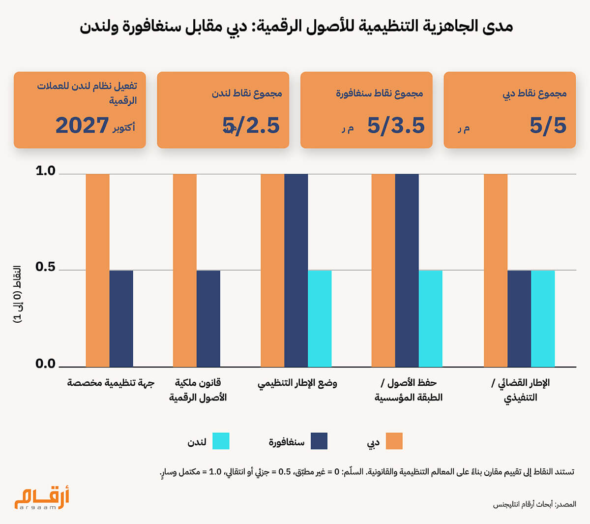 ● قوانين تعترف بالأصول الرقمية كملكية خاصة ● قواعد واضحة تحدد كيفية الاحتفاظ بالأصول الرقمية وتخزينها بأمان ● محاكم تفهم طبيعة الأصول الرقمية وتستطيع الفصل في النزاعات المتعلقة بها ![]() ![]() 🔎 الإطار التنظيمي الذي يعمل من بُعد لا يحتاج مدير صندوق في سنغافورة أو مكتب عائلي في زيورخ إلى التواجد الفعلي في دبي للاستفادة من قوانينها فيما يتعلق بالأصول الرقمية، طالما لديهم شركة مسجلة في الإمارة تعمل تحت إشراف هيئة تنظيم الأصول الافتراضية. وهنا يكتسب التوافق مع المعايير الدولية أهميته العملية. فالإطار القانوني لدبي للأصول الرقمية مستمد من مبادئ القانون الإنجليزي العرفي، ونهجها التنظيمي يعكس أطر صندوق النقد الدولي و مجلس الاستقرار المالي الدولي في الإشراف على العملات الرقمية، فيما باتت معايير حفظ الأصول والسلوك المهني معروفة لدى الأطراف المؤسسية في لندن وسنغافورة ونيويورك. وهذا التوافق المتبادل هو ما يحوّل الإطار المحلي إلى منظومة قابلة للاستخدام عالميا. وفي بيئة النزاعات، لا يتوقف رأس المال عن الحركة — بل يصبح أكثر انتقائية. فالمستثمرون القلقون بسبب حرب إيران مع إسرائيل وأمريكا، لا يبحثون عن الأمان الجغرافي وحده، بل عن قوانين راسخة تحمي أصولهم الرقمية تحديدا، وهو ما يمنح دبي مصداقية تتجاوز حدود المنطقة. ![]() وحين تستطيع الأصول أن تعبر الحدود في ثوان، لا يعود السؤال الجوهري عن وجود القواعد الناظمة للاستثمار في العملات الرقمية من عدمه، بل عن مدى قابليتها للتطبيق والتنسيق داخل كل دولة على حدة وفق تشريعاتها المحلية. فالإطار الذي وضعه صندوق النقد الدولي لتنظيم العملات الرقمية ليس وثيقة امتثال بيروقراطية، بل تحديد لما يشترطه المستثمر قبل أن يضع أمواله في أي سوق. وفي السياق ذاته، يُنبّه مجلس الاستقرار المالي إلى أن قوة المنظومة التنظيمية لا تُقاس بمتانتها داخل حدود الدولة وحدها، بل بمدى قدرتها على التنسيق مع الأنظمة الأخرى لسد ثغرات يمكن استغلالها. وبحلول يونيو 2025، تبنّت أكثر من 61 شركة مدرجة حول العالم استراتيجيات للاستثمار في البيتكوين، لكن الأهم من العدد هو طبيعة التحول. وتجاوزت كبرى الشركات مرحلة شراء البيتكوين، وانتقلت إلى توظيفها أداة للتمويل. فبدلاً من الاكتفاء بإدراجها في الميزانية، باتت تستخدمها ضماناً لإصدار أدوات تمويلية متنوعة — من سندات تمنح حاملها حق التحويل إلى أسهم، إلى أسهم ممتازة ذات عوائد ثابتة، وصولاً إلى هياكل دين مدعومة بحيازات البيتكوين مباشرة. وهذا يعني أن السؤال الذي يشغل السوق لم يعد: من يملك البيتكوين؟ بل، من يستطيع بناء هيكل مالي متكامل للتعامل بها؟ عالميا، تتقدم دبي على لندن في هذا المسار، إذ لا يُتوقع أن يدخل الإطار التنظيمي البريطاني المخصص للأصول الرقمية حيز التنفيذ قبل أكتوبر 2027. مما يجعل المملكة المتحدة في مرحلة انتقالية — مصداقيتها لا أحد يشكك فيها، لكنها لم تستكمل بعد بنيتها التنفيذية لهذا السوق. أما سنغافورة فأكثر تقدماً في التطبيق، غير أن نظامها لمزودي خدمات رموز الدفع الرقمي الصادر عام 2025 جاء انتقائيا ومحافظا بشكل لافت، لا سيما فيما يخص الشركات الموجهة نحو الأسواق الخارجية والمخاطر المرتبطة بالعملاء الأفراد. وقد حظرت هيئة النقد النقدية السنغافورية (MAS) على مزودي خدمات رموز الدفع الرقمي تقديم الائتمان أو الرافعة المالية للعملاء الأفراد، مما يُرسّخ توجهها الرقابي المحافظ القائم على الحيطة والحذر الشديدين. تمتلك دبي فرصة حقيقية لاغتنامها لاسيما في هذا الوقت العصيب في المنطقة، إذ إنها قد تصبح المدينة العالمية الأكثر استعدادا تنفيذيا لاستيعاب الصفقات الموجهة نحو الخليج العربي وآسيا وأفريقيا، وهي مناطق ظلت في السنوات الأخيرة في هامش اهتمام نيويورك ولندن. لكن السؤال الجوهري يتجاوز جودة الإطار التنظيمي إلى ما هو أصعب: هل تستطيع دبي تحويل سبقها التنظيمي إلى ثقل سوقي دولي حقيقي، أم أن المسافة بين امتلاك القوا