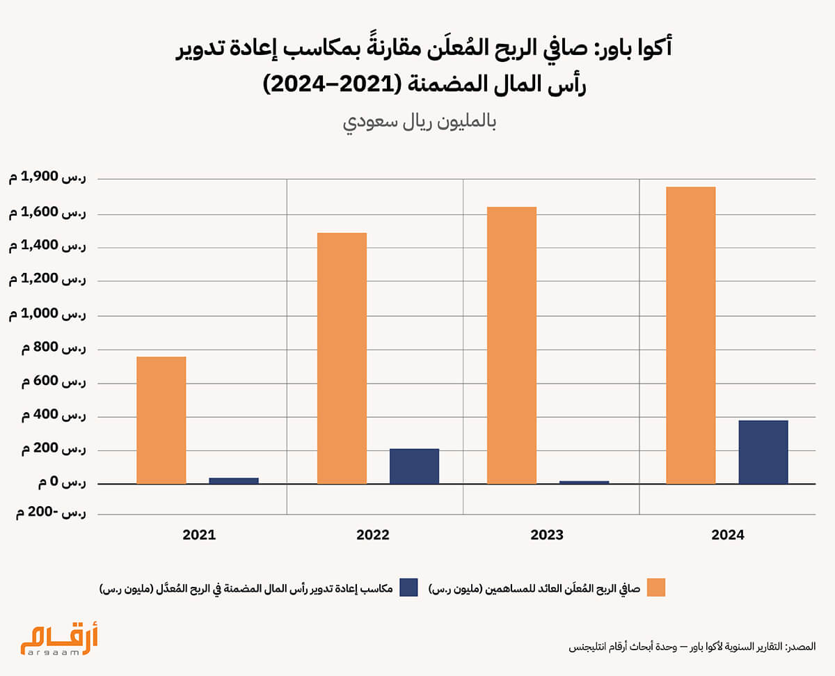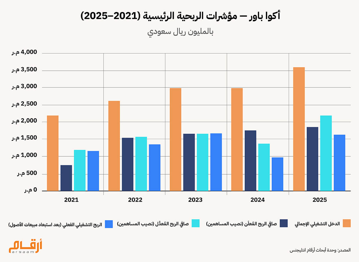 منذ إدراج أسهمها في تداول عام 2021، تُظهر أكوا باور نمواً متواصلاً في أرباحها المُعلَنة. وتبدو هذه الأرقام للوهلة الأولى مؤشراً على أداء واعد، غير أن تفكيك هذه الأرقام إلى مكوناتها الأساسية يُضيف بُعداً تحليلياً مهماً لأي تقييم موضوعي. والسؤال الذي يسعى هذا التحليل من أرقام انتليجنس الإجابة عليه هو: هل يعكس تحسّن مؤشرات ربحية أكوا باور تقدماً في صميم عملياتها من توسع في الطاقة المُباعة، وتحسّن في هوامش ربح المشاريع، وتدفقات نقدية من نشاطها الأساسي، أم أن جزءاً من هذا التحسن يعود إلى قرارات إدارة الأصول وبيع حصص في مشاريع الشركة، وهي عوامل قد تُسهم في رفع الأرقام المُعلَنة دون أن تعكس بالضرورة تحسناً مماثلاً في أداء العمليات اليومية؟ وتُتيح أربع سنوات من القوائم المالية المدققة الصادرة منذ الطرح العام لأكوا باور قدراً وافياً من البيانات للإجابة عن هذا السؤال على أسس موضوعية. ![]() نفهم من تلك البيانات أن الدخل التشغيلي الإجمالي حافظ على مسار تصاعدي منتظم، إذ ارتفع من 2,193 مليون ريال عام 2021 إلى 3,594 مليون ريال عام 2025. أما صافي الربح المُعلَن، فقد تضاعف أكثر من مرتين، من 759 مليون ريال عام 2021 إلى 1,852 مليون ريال عام 2025. وفيما يخص صافي الربح المُعدَّل، بعد حذف البنود الاستثنائية غير المتكررة، فقد شهد تراجعاً كبيرًا عام 2024 إلى 1,373 مليون ريال، قبل أن يقفز إلى 2,196 مليون ريال عام 2025. غير أن الشريط الأكثر دلالة هو الربح التشغيلي الفعلي بعد استبعاد مبيعات الأصول، إذ يعكس ما أنتجته عمليات الشركة الأساسية فعلاً — من تشغيل محطات الطاقة والمشاريع — دون احتساب ما جنته من بيع حصص أو أصول. وفي عام 2024، هبط هذا الرقم بشكل لافت إلى 971 مليون ريال، وهو فارق كبير عن صافي الربح المُعلَن البالغ 1,757 مليون ريال في العام ذاته. هذا الفارق يكشف أن جزءاً مهما من أرباح 2024 المُعلَنة لم يأتِ من بيع الكهرباء، بل من بيع الأصول. وبحلول عام 2025 استعاد هذا المؤشر بعض عافيته ليصل إلى نحو 1,632 مليون ريال، وإن ظل دون مستوى صافي الربح المُعدَّل للعام نفسه، مما يشير إلى أن عمليات إعادة تدوير الأصول لا تزال تؤدي دوراً محورياً في تشكيل الصورة الربحية للشركة. حين تحسب أكوا باور ربحها المُعدَّل — وهو الرقم الذي تقدمه بوصفه مقياساً أكثر دقة لأداء أعمالها — فإنها تستبعد منه بنوداً معينة تعتبرها غير متكررة. غير أن المكاسب الناجمة عن بيع حصص في شركات المشاريع لا تندرج ضمن تلك البنود المستبعدة. إذ تصنّف طريقة الشركة المحاسبية هذه المعاملات باعتبارها جزءاً من مسار أعمالها الاعتيادية، مما يعني أنها تُدرج ضمن خط الربح المُعدَّل جنباً إلى جنب مع إيرادات توليد الكهرباء. ففي عام 2022، باعت أكوا باور حصة بنسبة 49% في محطة سيرداريا للطاقة في أوزبكستان، وسجّلت مكسباً نقدياً بلغ 236 مليون ريال سعودي. وبموجب إطار التصنيف المحاسبي المعتمد لدى الشركة، ظل هذا المكسب مُدرجاً ضمن رقم الربح المُعدَّل لذلك العام، دون أن يُعامَل بوصفه بنداً استثنائياً.