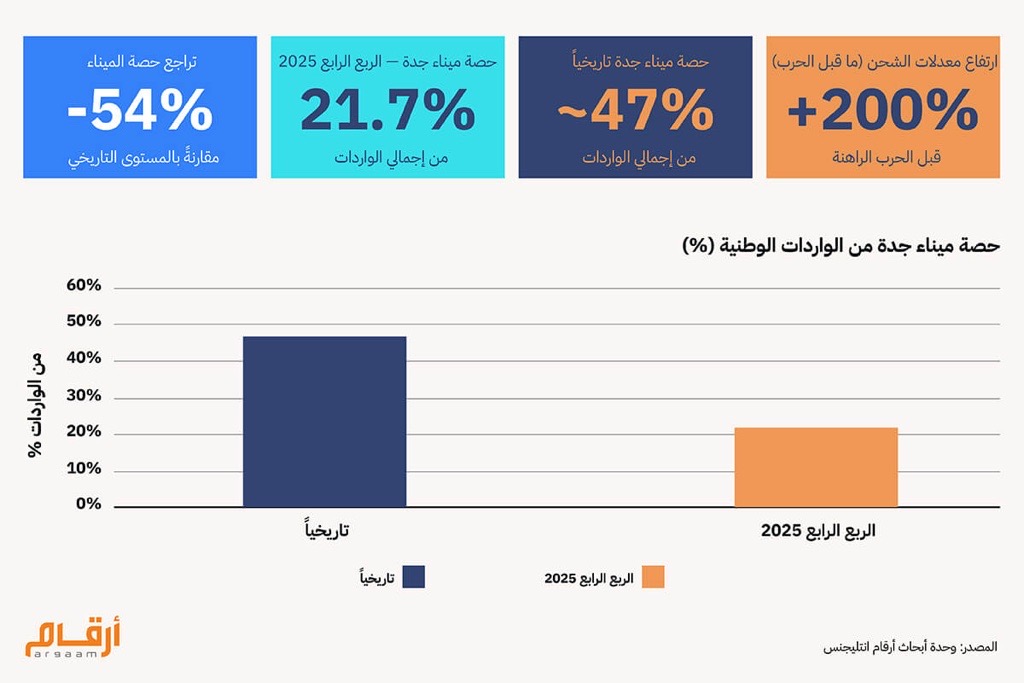 التزامن الذي يُحوّل التحدي إلى عبء مركب حين تأتي هذه الضغوط متفرقة، تملك الشركات عادة ما يكفي من الوقت والموارد للتكيّف. لكن تزامنها في آنٍ واحد هو ما يحوّل الضغط إلى أزمة. أ. اضطرابات سلاسل الإمداد: صدمة التكلفة البنيوية كانت أسعار الشحن قد ارتفعت أكثر من 200% قبيل الحرب الأخيرة. وانخفضت حصة ميناء جدة من الواردات الوطنية من حوالي 47% تاريخياً إلى 21.7% في الربع الرابع 2025 أي أن معظم ما كان يصل مباشرة إلى غرب المملكة بات يسلك مسارات أطول عبر الدمام أو موانئ خليجية بديلة. والمصنع الذي يعمل بنموذج Just-in-Time لا يملك احتياطيا للتعامل مع هذا التأخر، فخط إنتاجه يتوقف قبل أن تصل الشحنة. ![]() ب. إصلاحات تسعير الطاقة: ضغط داخلي مُبرمَج في توقيت غير ملائم الإصلاحات صُمِّمت للتدرّج على سنوات لا للتزامن مع صدمة خارجية. الحرب لم تضف تكاليف طاقة جديدة، لكنها ضغطت الجدول الزمني، فالشركات تستقبل عبء المرحلة الإصلاحية الأخيرة قبل أن تبني الاحتياطيات اللازمة للتكيف. الفارق ليس في حجم التكلفة، بل في توقيتها، فما كان يمكن تحمّله على خمس سنوات قد يُشكّل خطراً حين يتكثّف في عام واحد. ج. ضغط الائتمان: التنافس على السيولة بين الإقراض الخاص وعوامل جذب التمويل الحكومي نسبة القروض إلى الودائع وصلت إلى حوالي 106%، وهو مستوى يجعل البنوك تُدار في وضع تقتير على الائتمان. وانكماش هامش الفائدة إلى 2.73% يعني أن البنك يختار المقترض الآمن والمشاريع الحكومية المضمونة لتتقدم في صف المشروعات المحتملة والمطلوب اقراضها. المصنع الخاص إذن لا يجد الباب مغلقا دائما، لكنه يجده أضيق وأغلى، وهذا وحده كافٍ لتأجيل قرار تحديث أو شراء الآلة الجديدة إلى ربع قادم أهدأ.